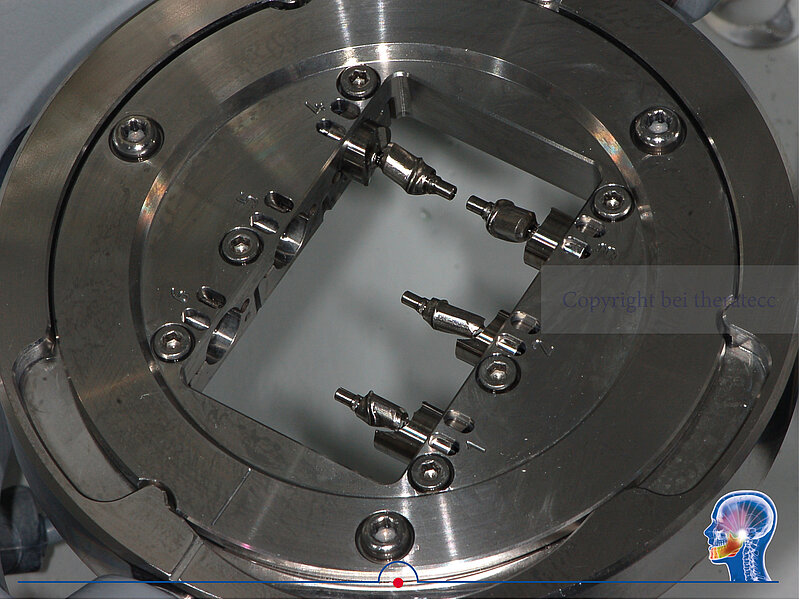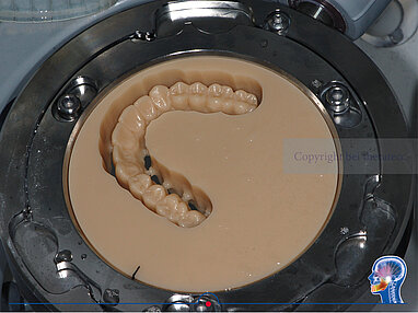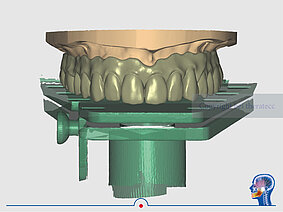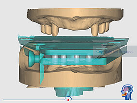 Als erstes wurden die Innenteleskope aus Titan Prefaces digital gefertigt und händisch finalisiert. Für einen spannungsfreien Sitz der Teleskopprothesen, wurden die Sekundärteile galvanisch hergestellt. Darüber wurde dann digital die Überkonstruktion gestaltet. Für alle die kein Galvano mögen, können die Sekundärteile auch aus PEEK gefertigt werden.