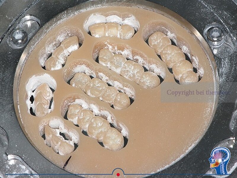 Ganz nebenbei hat sich dadurch die Tragedauer der Provis auf wenige Tage reduziert und der Wunsch der Patientin nie ohne Zähne außer Haus zu gehen konnte auch erfüllt werden. Der sonst übliche Einprobetermin ist damit auch überflüssig.