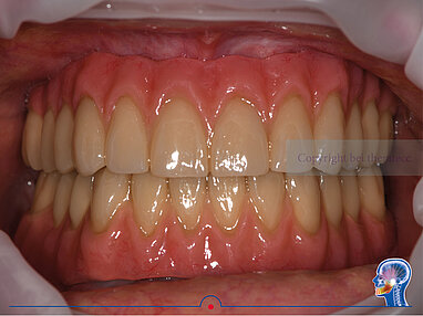 Die größte Herausforderung bei diesem Fall war, die Wiederherstellung einer optimalen Bisslage. Damit verbunden die anatomisch und ästhetisch korrekte Gestaltung der Okklusionsebene.